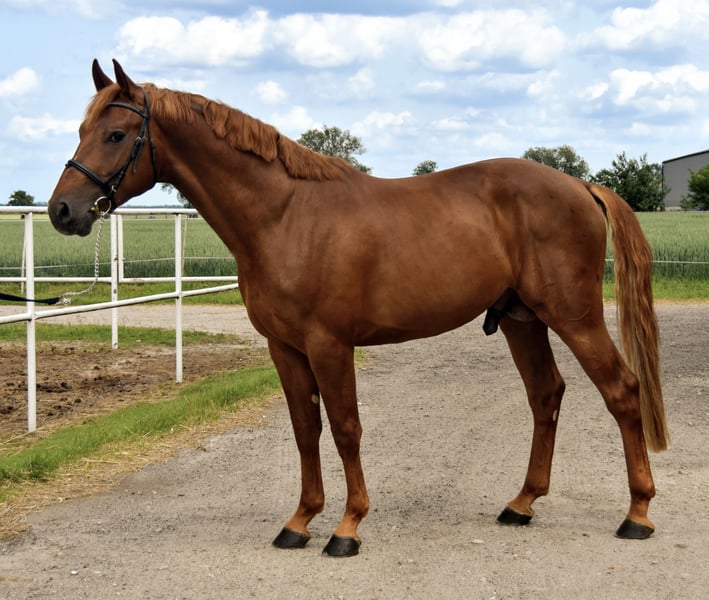 For sale is a beautiful chestnut stallion born in 2021. He has an excellent pedigree: Q'Chacco Blue van Essene (Chacco-Blue) x Nabab de Reve. Standing 166 cm tall, he is ideal for both show jumping and other equestrian disciplines. His excellent temperament and versatility make him suitable for both experienced and novice riders. He is very brave and rides well. He has begun training in jumping under saddle. for more information please contact me in a private message or on whatsapp.