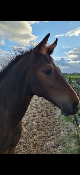 Mooi hengstveulen. Louis is een knap hengstveulen. Met een een nuchter karakter. Hij is mens gericht loopt zo aan een halstertje mee Is bekapt en ontwormd. Zal een leuke allrounder worden . Hij zal rondt de 165 / 170 worden