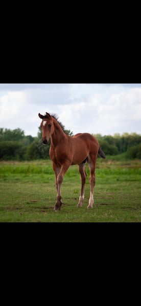Schönes Hengstfohlen. Louis ist ein hübsches Hengstfohlen. Mit einem ruhigen Charakter. Er ist menschenbezogen und läuft brav an einem Halfter mit. Er ist beschlagen und entwurmt. Er wird ein netter Allrounder werden. Er wird etwa 165 / 170 cm groß werden.