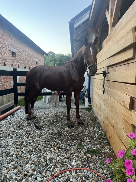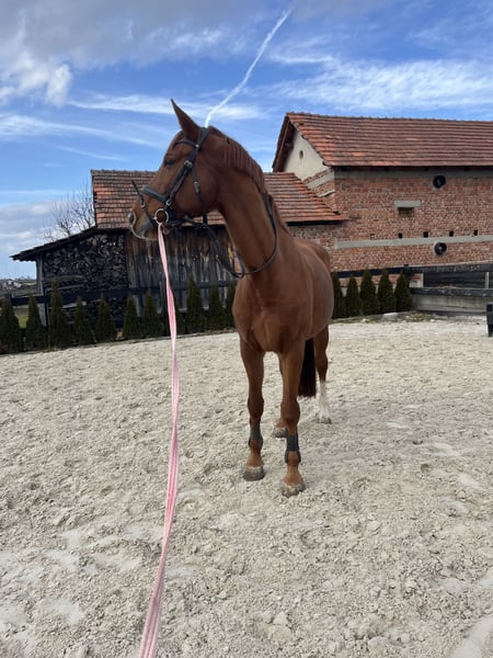 Zum Verkauf steht eine 9-jährige Stute aus dem Anglo European Studbook (AES), die 175 cm groß ist. Sie hat erfolgreich bis 1,00 m im Wettkampf teilgenommen und zeigt klares Potenzial für höhere Klassen. Sie verfügt über eine hervorragende Sprungtechnik, ausgewogene und elastische Bewegungen sowie einen natürlichen Rhythmus, was sie auch sehr gut für die Dressur geeignet macht. Die Stute ist gesund, hat ein ruhiges Temperament und ist in allen Situationen einfach zu handhaben. Sie lädt problemlos und reist perfekt, sowohl im Stall als auch bei Wettbewerben verhält sie sich gut. Röntgenbilder aus dem Jahr 2022 sind verfügbar und bestätigen, dass sie sich in ausgezeichnetem Zustand befindet.