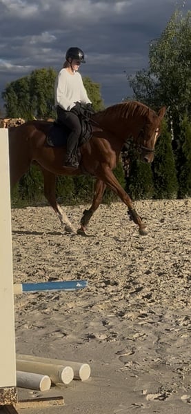Imię konia: La Luz de Croacia Rasa: Anglo European Studbook (AES) Płeć: Klacz Rok urodzenia: 2016 Kolor: Kasztanowata Wzrost: 180 cm Numer UELN: 826002160877132 Stowarzyszenie hodowlane: Anglo European Studbook (AES) 🐴 Opis La Luz de Croacia to pięknie zbudowana klacz z 2016 roku, pochodząca z prestiżowego rodowodu AES, zawierającego silne i znane linie holsztyńskie. Posiada pełny paszport brytyjski oraz wszystkie niezbędne dokumenty. Ma spokojny i przyjazny temperament, jest łatwa w obsłudze i przyzwyczajona do codziennej opieki oraz rutyny. Idealna do rekreacyjnej jazdy, podstawowego ujeżdżenia, małych skoków, pracy na ziemi lub jako koń rodzinny. Doskonała dla jeźdźców poszukujących niezawodnego, dobrze wychowanego i uczciwego konia. 🧬 Najważniejsze informacje o rodowodzie ✔ Ojciec: Lysston (Holsztyn) ✔ Matka: High Star (AES) ✔ Zawiera słynne linie krwi, takie jak Ladykiller, Landgraf, Alme Z, Ramiro Z …
