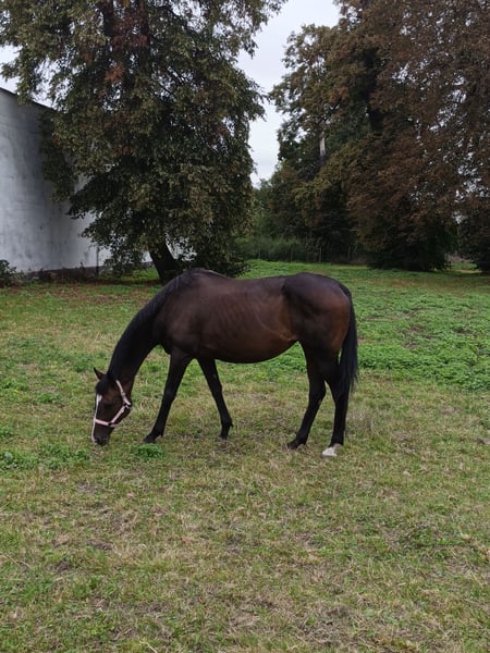 Verkaufen Sie eine ruhige, reit- und freizeitreine Stute Zum Verkauf steht eine englische Warmblutstute, Alter: 18 Jahre Größe: 1,64 m Farbe: Dunkelbraun Die Stute ist sehr brav, ohne Unarten. Sie bewegt sich in den Grundgangarten, geht gerne vorwärts. Perfekt für den Einsatz im Gelände – sie hat keine Angst vor Straßenverkehr, Autos oder anderen Reizen. Sie buckelt nicht, steigt nicht und ist sicher im Umgang. Selbst nach längerer Pause kann man sie problemlos reiten – ruhig und gelassen, macht nichts. Sehr brav beim Putzen, Satteln und bei Pflegearbeiten. ➡️ Nicht beschlagen. ➡️ Verbesserungsbedarf: Schwierigkeiten beim Einsteigen in den Anhänger – muss noch geübt werden. Ideal für Freizeit, Geländeausritte und auch für weniger erfahrene Reiter. 📍 Standort: Umgebung Wrocław 💰 Preis: 7.000 PLN