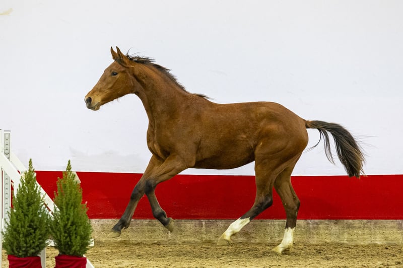Uscolle S is turning two years old and already shows why he is a very interesting young prospect. He is sired by Chaplin, a stallion who competed successfully at the very highest level and is proving himself as a sire. Chaplin performed internationally at 1.60–1.65 m level, with victories and top placings at CSI5* events. His offspring are known for scope, technique and mentality, qualities clearly visible in Uscolle S. One of the most striking features of Uscolle S is his canter. He shows excellent balance, power and ease. In his movement, he appears complete in his conformation and body use. Over the jump, he shows good overview, scope and very correct technique. His hindquarters are strong and active, providing a powerful take-off and a good jump finish. Everything suggests that this horse will be very pleasant and confident to ride in the future. Mentally, Uscolle S also makes a good impression. He shows a good attitude and seems to understand his work naturally. His balance, technique and scope make him a young horse with a lot of potential. The damline is exceptionally strong and deeply rooted in sport. Dam Iscolle S is by Berlin, himself successful at 1.60 m Grand Prix level and a proven sire of international showjumpers. From this damline comes Havinga’s Christiano van de Valckenborg, an approved NRPS stallion. Granddam Escolle (by Espri) produced several sport horses, including Darcolle Z, who competed at 1.45 m level internationally. Further down the line, we find an impressive list of sport horses competing at 1.30 m to 1.50 m level, such as Zutano Z (1.50 m), Carollez Z (1.45 m), Celesto Z (1.40 m) and many others. This family is known for durability, scope and consistent sport performance over generations. Uscolle S combines a powerful canter, excellent balance, correct jumping technique and a proven performance pedigree. A very complete young horse with strong prospects for the future.