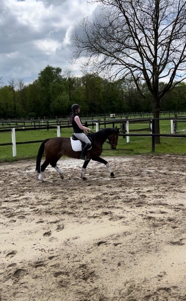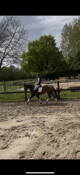 Zum Verkauf steht meine 6 Jährige Stute mit überzeugender Abstammung und vielversprechendem potenzial für Sport und Zucht. Sie zeigt sich äußerst lernwillig, aufmerksam und bewegungsfreudig. Sie verfügt über drei Schwungvolle Grundgangarten, ist klar im Kopf, menschenbezogen und punktet täglich mit ihrem freundlichen und unkomplizierten Wesen. Sie kennt die Arbeit in der Halle, auf dem Platz und im Gelände. Auf dem Turnier und in neuer Umgebung zeigt sie sich souverän und konzentriert. Sie wird regelmäßig geimpft/ entwurmt und wird selbstverständlich regelmäßig dem Schmied vorgestellt. Zähne wurden im Januar gemacht und Anfang September kontrolliert. Ob für ambitionierte Freizeitreiter oder den Einstieg in den Turniersport- diese junge Stute bringt beste Voraussetzungen mit und freut sich auf ihre weitere Förderung. Da ich leider wegen Zeitmangel etwas verkleinern muss freut sich diese Stute über ein neues Passendes zuhause. Bei Interesse oder Fragen freuen wir uns über eine Nachricht oder einen Anruf (unter 015783080018). Probereiten sind nach Absprache jederzeit möglich.