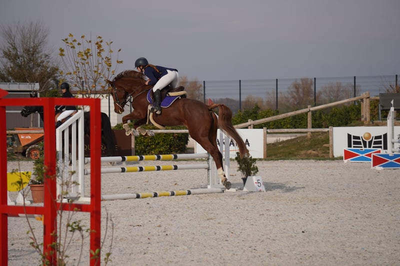 PICO BELLA H, yegua de 5 años, con muy buenos movimientos a los tres aires. Haciendo recorridos a 0.90m saltando más grande en aislado Por parte de padre es hija de "HOCUS POCUS III Z" y por la línea materna viene por "CANTOS"