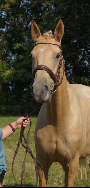 Je vends ici ma Goldi. Elle était une cheval de saut d'obstacles de niveau A et devait devenir à la fois une jument de reproduction et un cheval de loisir chez moi. Elle convient parfaitement aux deux usages, car même après plusieurs mois de pause, on peut lui remettre la selle sans qu’elle devienne chaude. Aucun longe ou autre préparation n’est nécessaire, car elle a une excellente attitude au travail et fait attention à l’humain. Cette année, elle a donné naissance sans complication à un poulain, qui a été évalué directement à 8,5 et a été primé en conséquence. Elle est de nouveau pleine de l’étalon exceptionnel Inefavel, et le poulain actuel issu de cette union peut être vu ici. Goldi est également tombée pleine dès la première insémination avec du sperme frais, et cela s’est déroulé sans problème, comme dans tous les autres domaines. Je ne peux mentionner aucune particularité désagréable qu’elle présenterait. Rien ne s’oppose à ce qu’elle soit utilisée en sport. Un radiographie TÜV peut être effectuée, mais les coûts ne sont pas pris en charge. Un contrôle d’AKU peut également être réalisé, ainsi que le transport, mais cela doit être discuté ou négocié. Elle n’est pas encore entraînée, mais sera immédiatement mise en selle si un intérêt sérieux se manifeste pour en faire un cheval de sport. Son poulain est également en vente ici. Je cède la reproduction de chevaux de grande taille en raison des coûts. Une réduction de prix significative est possible en pack double. La place prime sur le prix.
