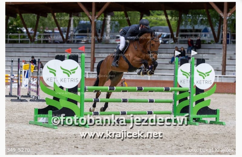 Bonito semental de 6 años, dispuesto a rendir, con potencial para saltos más altos. Ya ha sido presentado con éxito en torneos hasta 115 cm, adecuado para jinetes amateurs experimentados. Radiografías sin hallazgos.
