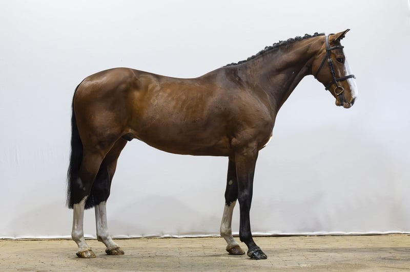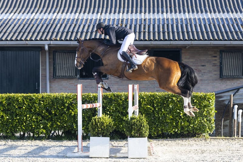 Nice and reliable horse with a calm character. Ridden by an amateur and has experience at 1.10m level. Careful over the jump with a good attitude and jumps with a nice technique. Comfortable to ride, well-behaved and very kind in handling. Easy to steer, does not stop and is pleasant to ride. Suitable for riders who want to ride at 1.10m–1.20m level, ideal as a schoolmaster or as a transition from pony to horse. A true girls’ horse with a reliable attitude. Sire Plot Blue competed at 1.60m level and is one of the absolute top sires. He produced numerous international showjumpers at the highest level, including multiple 1.60m and even 1.70m horses such as Le Blue Diamond van ’t Ruytershof and Messi van ’t Ruytershof. Dam The dam Chocolate Peanut is a daughter of Ulysses M2S and comes from a solid sport-oriented line. Damline From the damline comes among others Indeed I Am, who competed at 1.35m level. The further line is built on proven sport influences such as Ekstein (1.35m) and Pilot, providing a solid foundation of sport and rideability. The line clearly shows aptitude for jumping with performances up to 1.35m level.