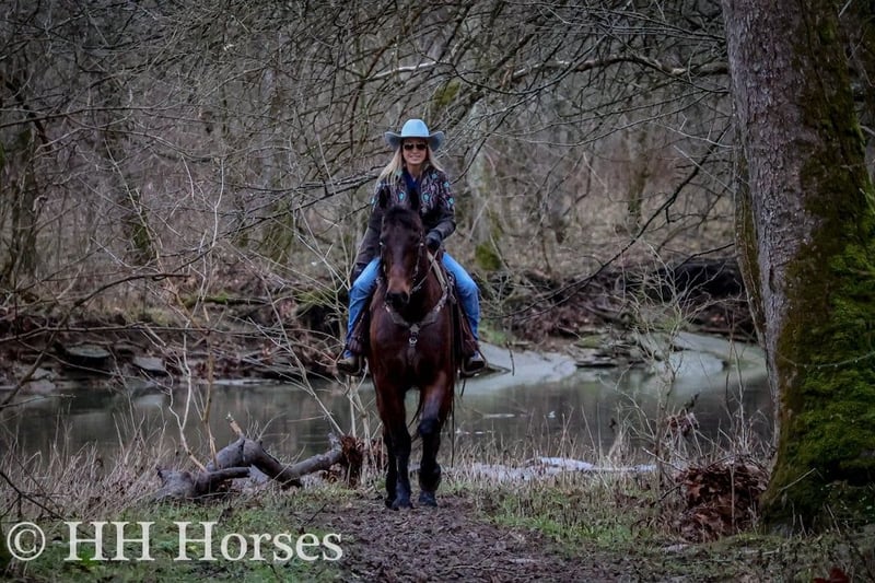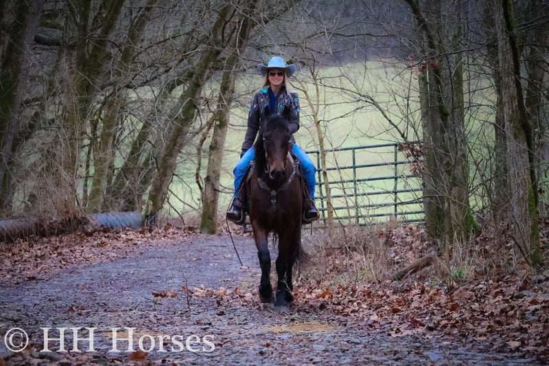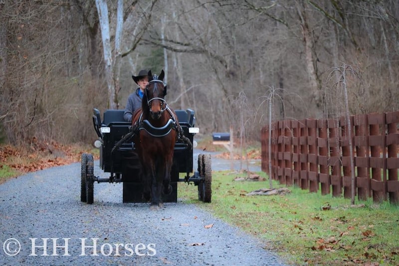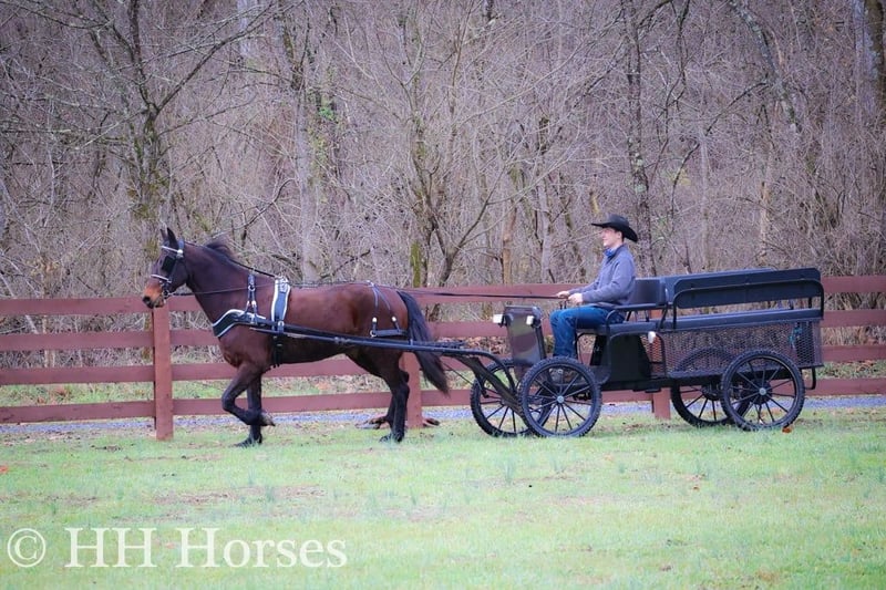 ONLINE AUCTION Place your bids at www.PlatinumEquineAuction.com Starting Bid $3500 Auction ends January 26th, 2025 Need a new saddle? Check out White Rock Saddles on our website or Facebook! Meet “Mr. KATMANDU”, a real gentle, real broke, fun, fancy, and quiet BAY FRIESIAN MORGAN CROSSBRED GELDING. He is broke to ride and drive and will also hook up and work to farm machinery. He is 15.3 hands tall and 9 years old. He has been through our cross country driving course and will cross the rushing water with a buggy or wagon fine. He will also trail ride anywhere you want to go, he is sure footed, honest, brave, and will ride out alone or in a group. He is fun to ride and stops hard, backs up, turns easily, and moves off of leg cues. He is just a real fun Friesian gelding that isn’t too fast and isn’t too slow. He is traffic safe, not spooky, and has no tricks and no surprises. He will lope off with no buck and no hump. He has a nice jog, a good walk, and a steady canter. He likes attention, has excellent ground manners, and he aims to please. He has been driven to town and in the pastures to check cattle. He’s versatile, pretty, smart, and sane. Contact HH Horses Erin 304-238-4155 for more info or to make a Buy It Now Offer. Located in Flemingsburg, KY.
