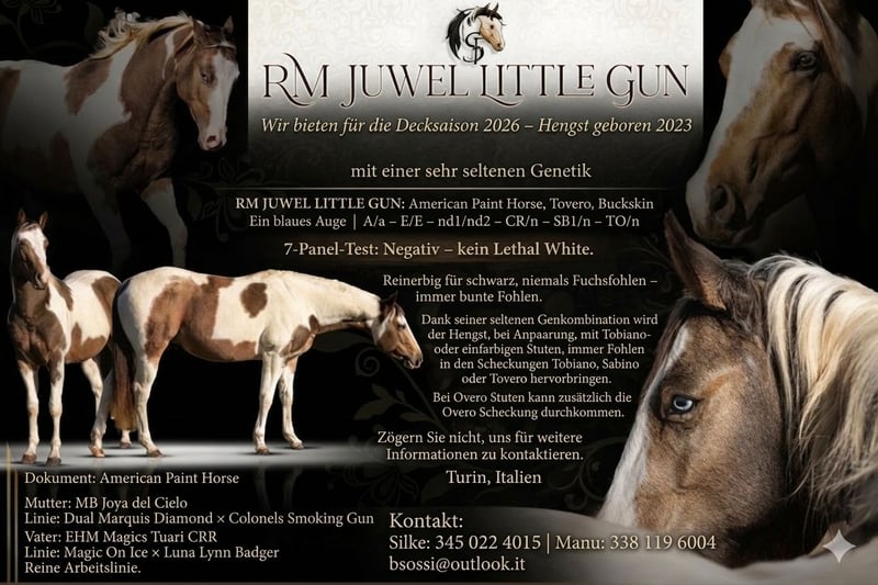 Si propone per la stagione di monta 2026, stallone nato nel 2023 con una genetica molto rara