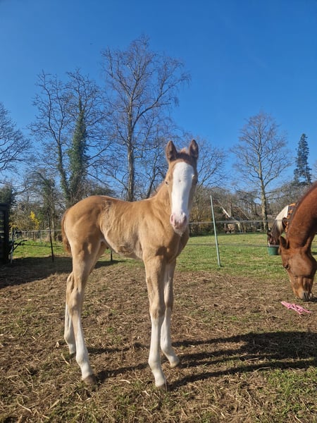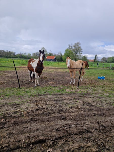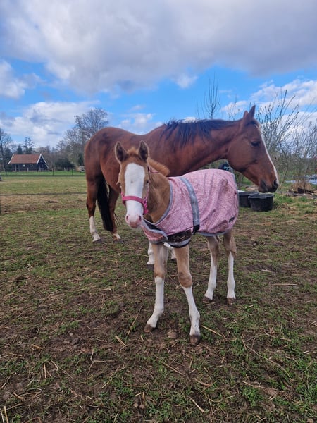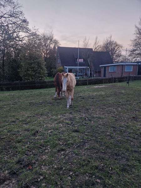 Met trots bied ik twee lieve Paint Horses aan, beide gefokt uit mijn eigen merrie Indian Slide. De merrie is ingeschreven in het APHA stamboek. Beide veulens zijn geregistreerd bij het APHA en hebben een fijne, eerlijke basis meegekregen. De veulens zijn opgegroeid in een gezonde, sociale omgeving. Ze zijn bekend met dagelijkse verzorging en omgang. 🐴 Nugget – Indian Honey Bumblebe - Hengst van maart 2025 - Kleur: Champagne gold - Huidige schofthoogte: ca. 140 cm - Verwachte eindhoogte: 150 – 155 cm - Afstamming: Bumblebee Gun Olena - Vraagprijs: €10.000 Nugget is een jonge hengst met een speels, energiek en nieuwsgierig karakter – een echte “kleuter” die de wereld nog volop aan het ontdekken is. Hij toont veel persoonlijkheid en potentie, en zal met de juiste begeleiding uitgroeien tot een prachtig paard. Zijn bijzondere champagne gold kleur maakt hem een echte blikvanger. Hij heeft een correcte bouw en laat veel aanleg zien voor de toekomst, zowel recreatief als in de sport of fokkerij. Algemene informatie - Beide veulens zijn APHA geregistreerd - ingeënt - Paspoort - Bekend met hoefsmid - Opgegroeid in een natuurlijke, sociale omgeving - Staan 24/7 weidegang - Bekend met basis omgang en dagelijkse verzorging Ze worden alleen verkocht aan een passend en goed thuis. Kwaliteit en welzijn staan voorop. Handelaren hoeven niet te reageren.