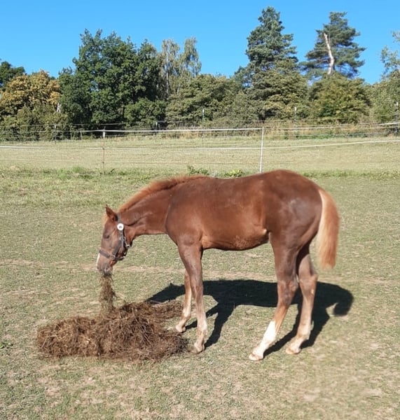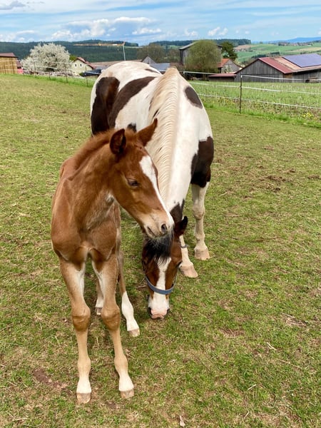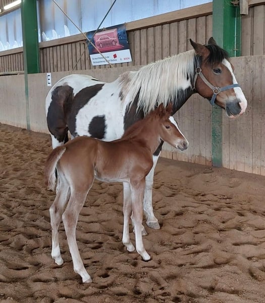 Ein neuer kleiner Held kam am 17.04.2025 zur Welt! Mit seinem ersten Atemzug hat dieser junge Hengst sofort für leuchtende Augen gesorgt. Er begegnet allem mit kindlicher Neugier, einem offenen Herzen und einer natürlichen Ruhe, die einfach berührt. Sein sanfter Blick, sein mutiges Auftreten und seine verspielte Art machen ihn schon jetzt zu einem ganz besonderen Begleiter! Er wird voraussichtlich ein handliches Endmaß von ca. 148 cm erreichen – perfekt für Sport und Freizeit! Er ist kräftig gebaut, mit geraden, stabilen Beinen und harmonischen Proportionen – ein echter Hingucker mit viel Potenzial. Er ist kerngesund, genetisch 5-Panel n/n getestet und kennt bei Abgabe bereits den Tierarzt und den Hufschmied. Natürlich wird er regelmäßig entwurmt und altersgerecht geimpft. Er wächst liebevoll im Herdenverband mit Gleichaltrigen auf und zeigt sich dort neugierig, menschenbezogen und verschmust. Der Kleine ist sehr brav im Umgang, lässt sich problemlos händeln und bewegt sich locker und elegant – ein echtes Naturtalent! Dank seiner hervorragenden Reining-Abstammung bringt er beste Voraussetzungen für den Turniersport mit, ist aber genauso ein Schatz für den Freizeitreiter. Sein Papa ist kein Geringerer als der erfolgreiche Lil Dunit Smart (LTE NRHA USA 33.560 $, NRHA Germany 10.180 €), ein Sohn des bekannten Lil Peppy Dunit Right. Er wird mit vollständigen Papieren und Equidenpass abgegeben – bereit, die Herzen seiner neuen Menschen im Sturm zu erobern. Er sucht noch sein⭐️⭐️⭐️⭐️⭐️-Zuhause! Bei Interesse gerne melden!