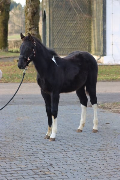 SHADOW OF SHADES MA Black Tobiano APHA Hengst Geboren: 08.06.2025 Endgrösse ca 152 cm 6 panel n/n EE aa Tt