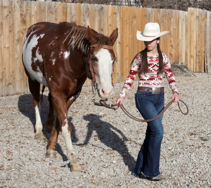 Conoce a Fancy (ONE FANCY GIFT 01044908). Es una yegua overo de 11 años, de color alazán, de 16 manos y aproximadamente 545 kg (fecha de nacimiento 15/01/2014). Está registrada en la APHA. Su padre es el famoso The Gift of Midas y su abuelo materno es I Got Charisma. Su madre es One Fancy Sirprize. Tiene una línea de sangre excepcional. Fancy tiene una estructura excelente, cascos fuertes, un color único y dos colores de ojos diferentes (el ojo izquierdo azul). Puede girar en ambas direcciones, hacer side pass, ceder las caderas y retroceder con facilidad. Es buena con perros, gallinas y bicicletas. Ha recorrido muchos senderos y lo hace de maravilla. Es tranquila para atar, enganchar y recoger las cuatro patas. Es excelente para el herrador y el veterinario, y es un sueño bañarla. Ha llevado herraduras delanteras durante los últimos dos años. Se mueve con las riendas de cuello y responde bien a las órdenes de voz. No muerde, patea ni hace tonterías. Fancy porta la mutación hereditaria muscular PSSM1 (N/P1 en el panel de 5 pruebas). Se maneja bien mediante dieta, medicación y ejercicio, y actualmente no presenta síntomas con estos cuidados. Más información sobre PSSM1 aquí: https://madbarn.com/type-1-pssm-in-horses/ Necesita alguien que pueda dedicarle tiempo, atención y una tarea. Sería excelente en clases de exposición y es una magnífica yegua de trail. Requiere un jinete fuerte, con experiencia y un enfoque confiado y paciente. Fancy es dominante en la manada, pero no es agresiva. Es muy dulce, se confía rápidamente, te recibe en la puerta, le encanta la atención y disfruta de la interacción. La vendemos para que pueda alcanzar su máximo potencial y tener más espacio y ejercicio del que podemos ofrecerle. Está al día en Coggins, vacunas, quiropráctico y odontología. La última revisión de herraduras y recorte frontal se realizó en 24/10/2025. Es fundamental que tenga un hogar permanente y amoroso. Incluye una manta de invierno completa, tres pacas de Teff, una bolsa de pellets de timothy y pulpa de remolacha, además de una variedad de suplementos. Precio: $5,900, abierto a ofertas. Ven a conocerla.