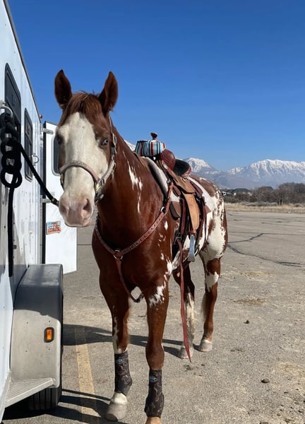 Meet Fancy (ONE FANCY GIFT 01044908). She is an 11-year-old sorrel overo mare, 16hh and approximately 1,200 lbs (Foaling DOB 01/15/2014). She is APHA-registered. Her sire is the famous The Gift of Midas and her grandsire I Got Charisma. Her dam is One Fancy Sirprize. She has an outstanding bloodline. Fancy has an excellent build, strong hooves, unique coloring, and two different eye colors (left eye blue). She can pivot both ways, side pass, yield her hindquarters, and back easily. She is good around dogs, chickens, and bikes. She’s been on many trails and does great. Good to tie, catch, and picks up all four feet. Excellent for the farrier and vet, and she is a dream to bathe. She has worn front shoes for the past two years. Moves off neck reins and responds well to voice commands. No biting, kicking, or nonsense. Fancy carries the PSSM1 hereditary muscle mutation (N/P1 on the 5-panel). It is well managed through diet, medication, and exercise, and she is symptom-free with this care. More here on PSSM1: https://madbarn.com/type-1-pssm-in-horses/ She needs someone who can give her time, attention, and a job. She would excel in halter classes, western pleasure, is a wonderful trail horse and bred for hunter jumper. She requires a strong, experienced rider with a confident, patient approach. Fancy is dominant in the herd but not mean. She is very sweet, quick to trust, meets you at the gate, loves attention, and enjoys interacting. We are selling her so she can reach her full potential and have more space and exercise than we can provide. She is UTD on Coggins, vaccines, chiropractic, and dental work. Trim and front shoes last done 10/24/25. A good, forever home is a must. She comes with a full winter blanket, three bales of Teff, one bag each of timothy pellets and beet pulp, and a variety of supplements. Asking $5,900. Come meet her for FaceTime. Thank you.