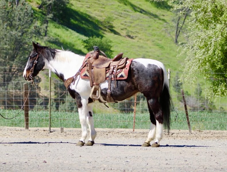 Betrouwbare Trail- en Ranchpaard Deluxe, 13 jaar oude zwarte Tobiano Paint-merrie