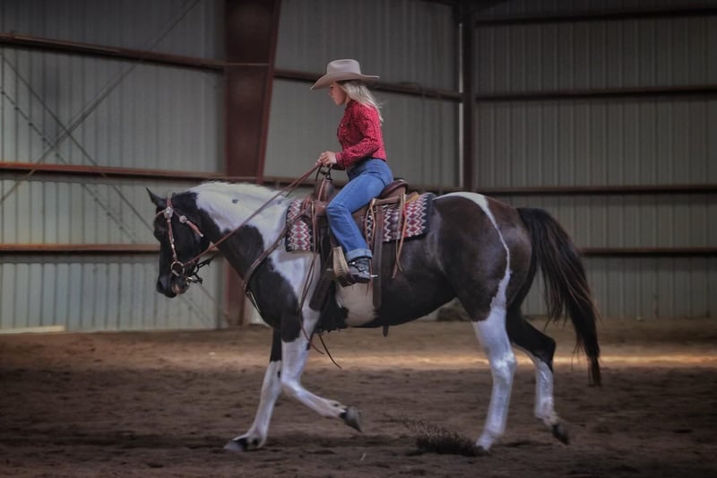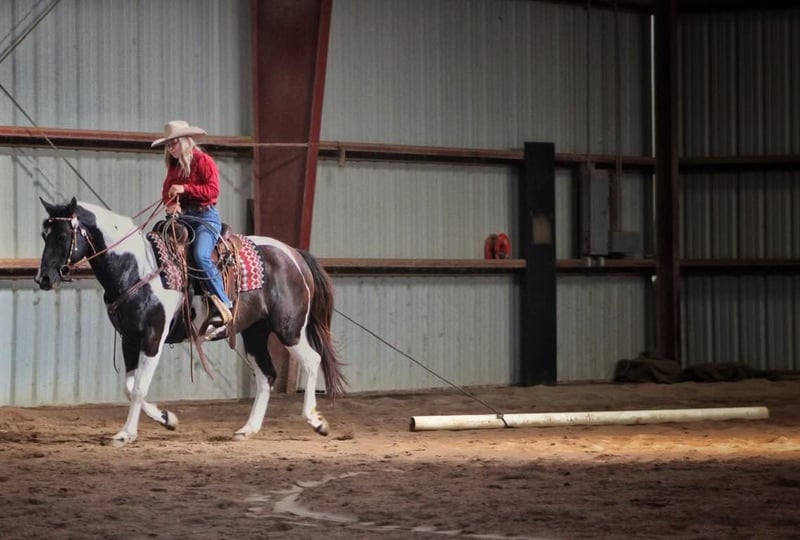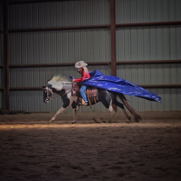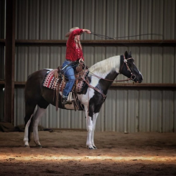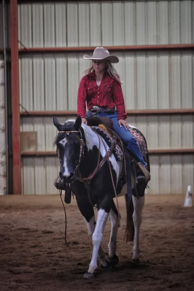 ONLINE-AUKTION Geben Sie Ihre Gebote unter www.PlatinumEquineAuction.com ab. Startgebot $3500 Die Auktion endet am 7. Juli 2024 Brauchen Sie einen neuen Sattel? Schauen Sie sich White Rock Saddles auf unserer Website oder Facebook an! Richter First Angel (Tibby) 2010 Reg. APHA 15 h Black / White Mare Wenn ich erklären sollte, was ein gut abgerundetes, vielseitiges Pferd ist, würde ich einfach unsere Stute Tibby beschreiben. Sie ist diese großartige Mischung aus einem schönen Körperbau (der die Gesundheit fördert), einem guten Gemüt und glänzt sowohl innerhalb als auch außerhalb des Reitplatzes. Sie hat eine umfangreiche Ausbildung sowohl in Western- als auch in englischen Disziplinen genossen. Tibby wurde auf unserem Hof für viele verschiedene Aufgaben eingesetzt, vom Unterricht über das Ausstellen bis hin zum Reiten im Gelände, und sie ist bereit, ein Ranchpferd zu sein, wenn man diese Richtung einschlagen möchte. Wenn es um englisches Reiten geht, ist Tibby eine Klasse für sich mit ihrem fließenden Trab und ihrer schönen Form über Zäune. Sie springt derzeit über 2'6" Parcours mit fliegenden oder einfachen Führungswechseln. Mit ihren Reitern hat sie mehrere Championate und Reservechampionate auf den Turnieren gewonnen. Tibby hat auch einen gewissen Westerncharakter und ist sehr handlich. Wir haben ein Seil von ihr geworfen, und sie zeigt viel Potenzial für ein großartiges Ranchpferd. Es macht ihr nichts aus, Planen zu spannen, Baumstämme zu ziehen, durch Tore zu gehen und mit Rindern in Kontakt zu kommen. Sie wäre ein außergewöhnliches 4H-Pferd für den Reiter, der gerne alles macht, und sie ist gut genug, um auch in der Zucht gezeigt zu werden. Tibby ist nicht nur ein Showpferd, sie ist auch ein sehr erfahrenes Trailpferd und war eines unserer Lieblingspferde für lange Ausritte. Wir sind erst kürzlich von einer einwöchigen Reise nach Eminence, MO, zurückgekommen. Mit ihr kann man das Trailreiten wirklich genießen, sie durchquert Wasser: Bäche und Flüsse, bewältigt alle Arten von steilem und unwegsamem Gelände ohne Probleme, und es spielt keine Rolle, ob man die Gruppe anführen oder das Schlusslicht bilden möchte. Sie ist nicht ängstlich oder reaktiv und fährt die Straße hinunter wie ein Profi. Tibby ist gesund, braucht keine Pflege, hat keine Untugenden und ist in Bezug auf Hufschmied, Coggins, Entwurmung und Impfungen auf dem neuesten Stand. Sie lässt sich leicht aufsatteln, steht für alle Pflegearbeiten und lässt sich leicht be- und entladen. Tibby ist ein echtes Allround-Pferd, das sich nicht nur auf das Reiten in der Arena oder auf das Ausreiten beschränkt. Sie ist bereit zu gehen und der Himmel ist die Grenze, was Sie alles mit ihr tun können. Für weitere Informationen rufen Sie bitte an oder senden Sie eine Nachricht an Cara Thomas 812-704-6388 in Borden IN. ONLINE-AUKTION Geben Sie Ihre Gebote unter www.PlatinumEquineAuction.com ab. Startgebot $3500 Die Auktion endet am 7. Juli 2024. Brauchen Sie einen neuen Sattel? Schauen Sie sich White Rock Saddles auf unserer Website oder Facebook an!
