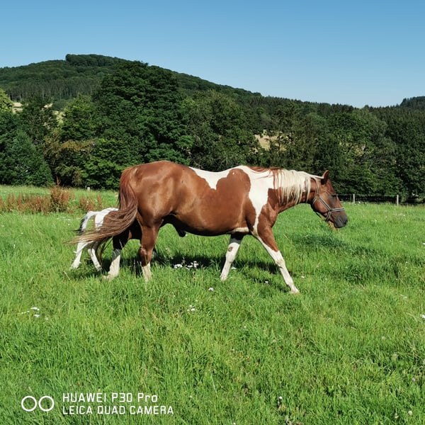 Molly ,, son vrai nom est ,,SUNSSHINE OLENA ,,,une jument adorable à vendre pour cause d'abandon de l'élevage ! jusqu'à il y a 3 ans elle était encore montée en randonnée ! Son poulain actuel est également à vendre, Elle a tout le papier ! Avec passeport J'ai encore beaucoup d'autres chevaux à vendre, car nous réduisons fortement nos effectifs, ! Si vous avez des questions, n'hésitez pas à me contacter au 06595 10445.
