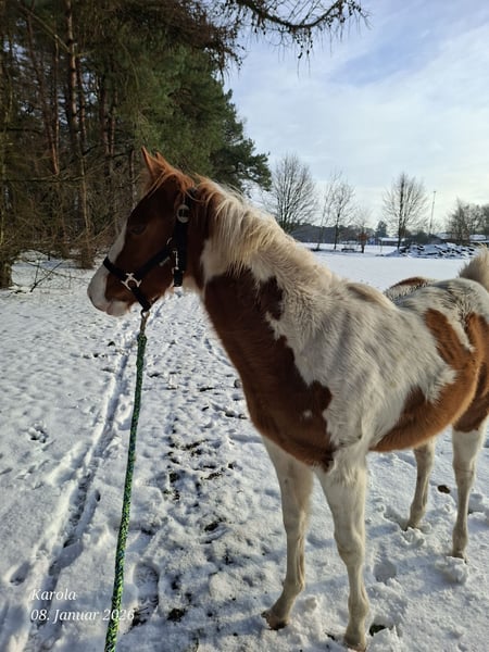 APHA Stute aus April 2025 in Red Dun Ich gebe meine kleine Maus aus April 25 ab. Sie ist super lieb und lernt sehr gerne neues, wird auch gerne betüddelt. Schmied und Anhänger sind ihr nicht fremd und macht sie super. Ihr Mutter ist meine Homozygot tobiano Stute Continental Bumblebee mit 150 cm Ihr Vater ist Jeannes Happy Ligth mit 153 cm in dunskin Jacke. Von ihr hat sie das Dun Gen geerbt. Sie besitzt Papiere von der APHA und einen Pass vom PHCG Happy Bumblebee oder Hummel genannt könnte ich mir auch super als Familienpony vorstellen. Wir wohnen in 49843 Preis 4.500🥕 vb