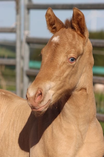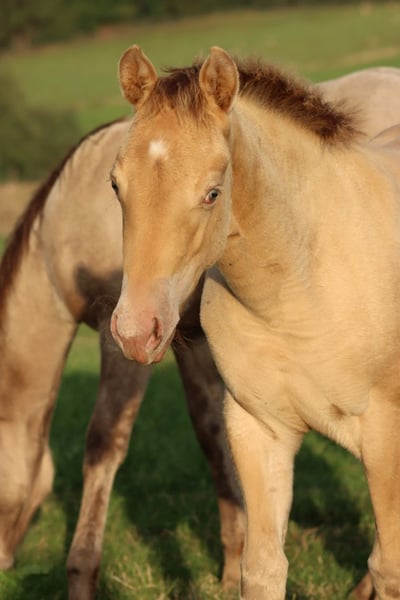CHEYENNES VUDUGUNFIRE Amber Dun Champagne APHA Mare Born: 05/08/2025 Expected height approx. 153 cm 7 Panel N/N Ee Aa Dd CHch