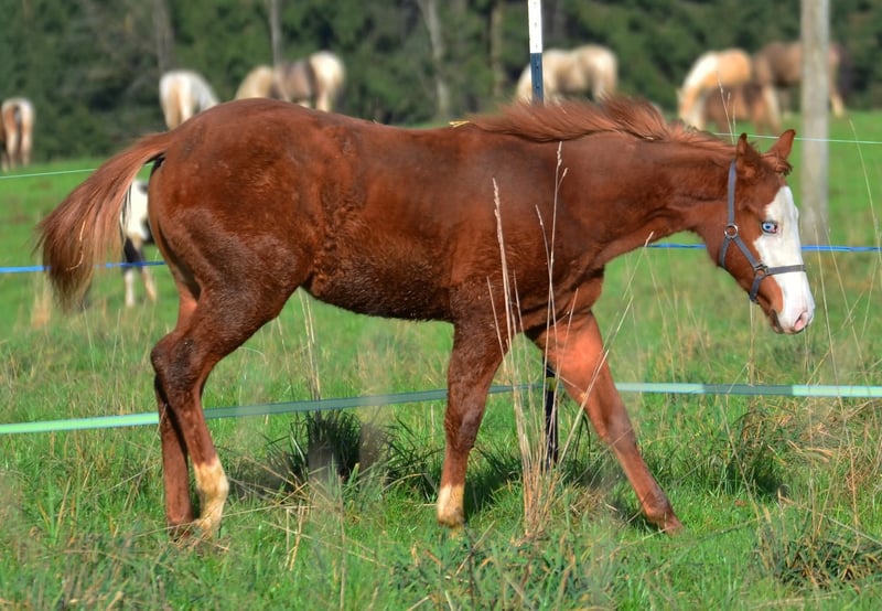 Miss Patty ist genial gebaut, toller Body, gerade Beine. Im begehrten Gunnerlook ohne Gunner zu sein. Sie ist 7 Panel N/N, und hat eine tolle Abstammung. Sie ist alters entsprechend erzogen. Prämienfohlen beim PHCG mit einer tollen gesammtnote von 8! Und zählt daher zu den 10 besten Stutfohlen in Deutschland.