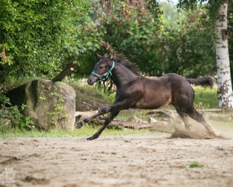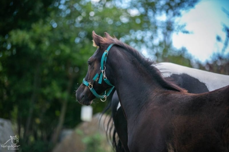 Bonjour, je suis la petite Sikari (en indien = Douce) et je suis une pouliche noire solide au caractère bien trempé. Je suis née en mai 2025 et je cherche un propriétaire aimant et cohérent après le sevrage en décembre. Mon papa est Black Starbuck, un étalon Quarter de 154 cm avec une excellente lignée (Hollywood Dun It, Colonels Smoking Gun, Katie Gun ...). Ma maman est Special Velvet Mount, jument primée (1,46). Ma maman est 6Panel n/n. Depuis mon premier jour, je suis une vraie espiègle qui adore câliner et découvrir tout ce qui m'entoure. Quand je serai grande, je mesurerai environ 1,50 m. Déjà maintenant, je suis une pouliche très robuste et musclée. Je fais face avec courage à tout ce qui est nouveau et je sais aussi assez bien ce que je veux. J'ai hérité cela de ma maman :) Je grandis dans un troupeau mixte en mode paddock trail. Cela me permet de courir, jouer et manger comme je le souhaite. J'espère que cela restera pareil chez mon nouveau propriétaire. Je ne veux pas être dans un box, même la nuit. Avant le sevrage, Sikari sera régulièrement vermifugée, présentée au maréchal-ferrant et apprendra l'ABC des poulains. Nous attachons une grande importance à ce que nos poulains soient bien éduqués et amicaux. Sikari recevra également un passeport équin du PHCG et des papiers APHA. Si Sikari a éveillé votre intérêt, n'hésitez pas à nous écrire pour plus d'infos. Nos poulains ne sont confiés qu'à des conditions de vie adaptées (stall ouvert/stall actif/paddock trail, etc.) et à des mains aimantes, prêtes à offrir à leur petit trésor une croissance et une vie avec un accès libre. Comme nos poulains peuvent participer à la décision de qui sera leur partenaire, une rencontre préalable est indispensable. Le prix est valable jusqu'en novembre 2025. www.harzhof-minsleben.de