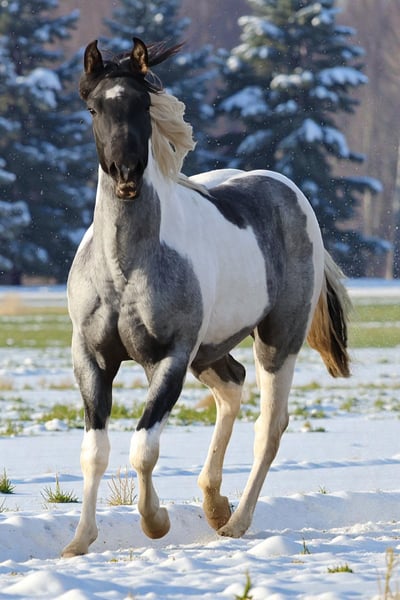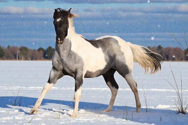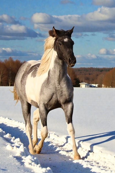 Ranch 3R – Spring (2 years old) Ranch 3R offers for sale in spring a two-year-old American Paint Horse mare: TR JOALLINE ILLUSION color light blue roan / tobiano, top reining bloodlines. Pedigree: ▪ Sire: Sparklin Tide Greggo – grullo/tobiano TT, APHA Grand Champion ▪ Dam: Magic Poco Lena Beau (AQH) ▪ Granddaughter of the multi-champion stallion Black Magic 497 (AQH) ➡️ Both parents can be seen at our ranch. Description: A stunning, elegant mare with a beautiful refined head, compact build, and strong, straight legs. Spacious, fluid movement and an exceptionally kind, communicative temperament – a true cuddle horse. Completely healthy, no injuries. Suitable for: ✔ Breeding ✔ Shows ✔ Sport ✔ Leisure riding ✔ Family horse for a soft, sensitive rider Health & Documentation: ▪ regularly trimmed ▪ dewormed ▪ complete vaccination program ▪ APHA certificate ▪ 7-panel genetic test ▪ passport available Training: Joalline has basic groundwork training, is unspoiled, trainable, willing to learn, and cooperative. A perfect opportunity to develop a horse from a solid foundation according to your own vision. Sales Conditions: Sold only to excellent, carefully vetted homes, ideally with the company of other horses. There is also the option for her to remain at our ranch together with her peers. About Us: Ranch 3R has a long-standing breeding tradition and excellent references from owners of our offspring throughout Europe. We provide lifetime advisory support to new owners, including assistance with American and Czech re-registration. Our ranch is also the birthplace and home of 🏆 The Most Beautiful Horse of the Czech Republic 2016 – Jackie Bueno Cherokee (APH). 📌 More information: www.ranch3r.cz E.: ranch3r@seznam.cz