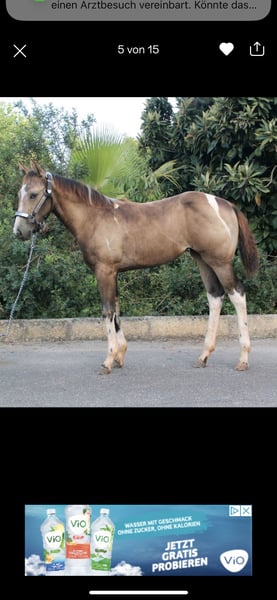 AM POCO MAGIC LUCY Lucy ist eine wunderschöne Buckskin Tobiano Stute. Momentanes Stockmass ca. 1,54m Vater: Magic on ICE Mutter: Betsy Poco Twist (Eltern letztes Bild) Sie hat Papiere bei der APHA. Lucy ist über ihre Eltern 5 Panel n/n und bei UC Davis Imm n/n getestet. Dazu der Farbtest E/e A/a Cr/n To/n. Foundationblutanteil 84 %. Evtl. auch ist interessant für die Zucht Paint Horse Stute, 2,5 Jahre – talentiert, charakterstark, in Ausbildung Wir verkaufen unsere zweieinhalbjährige Paint-Stute Lucy. Lucy wird voraussichtlich kein typisches Anfängerpferd, sondern ein Pferd für ambitionierte Reiter, die Freude daran haben, ihr Potenzial weiter zu fördern. Sie ist brav im Umgang und gleichzeitig selbstbewusst. Lucy hat in der Bodenarbeit bereits deutliche Fortschritte gemacht und akzeptiert den Sattel schon gut. Aktuell wird sie im Trainingsstall behutsam weiter auf den Beritt vorbereitet. Sie ist geimpft, gechippt, regelmäßig entwurmt, kennt den Schmied und ist gut sozialisiert. Lucy ist eine aufgeweckte, lernfreudige junge Stute, die mit der richtigen Führung ein tolles Pferd für Sport oder ambitionierte Freizeitreiter werden kann. Bei Interesse freuen wir uns über eine Nachricht.