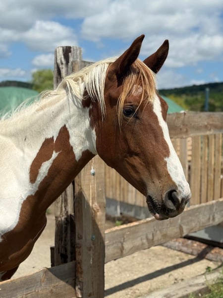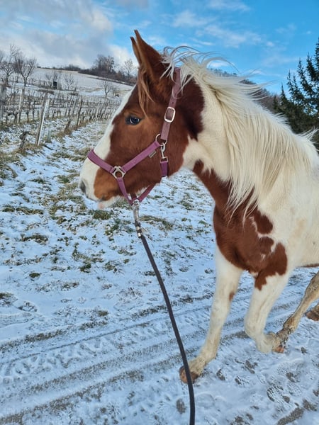 Unsere im November 2023 geborene Paintmix-Stute (2,5 Jahre alt) sucht ein neues, liebevolles Zuhause. Sie ist bei uns geboren und in unserer Familie in der Herde aufgewachsen. Von Anfang an durfte sie in Ruhe und mit viel Zuwendung groß werden – entsprechend zeigt sie sich heute als sehr brave, menschenbezogene und liebevolle junge Stute mit einem ganz besonderen Charakter. Für uns ist sie ein echtes Familienmitglied. Stockmass: mom 1,62, geimpft und regelmäßig entwurmt. Sie ist schmiedefromm und problemlos verladeftauglich. Das Fohlen-ABC beherrscht sie sicher, auch Longieren funktioniert schon der gut. Sie ist verspielt, neugierig und sehr lernfähig – sie möchte gefördert und beschäftigt werden und bringt dafür die besten Voraussetzungen mit. Wir wünschen uns für sie ein Zuhause mit Herz. Bei ernsthaftem Interesse freuen wir uns über eine persönliche Nachricht