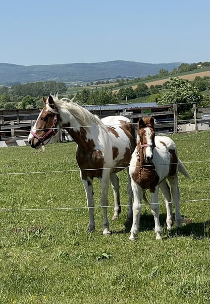 Our Paint mix mare, born in November 2023 and now 2.5 years old, is looking for a new, loving home. She was born here and grew up within our family herd. From the beginning, she was raised in a calm environment with plenty of care and attention. As a result, she is now a very well-behaved, people-oriented, and affectionate young mare with a very special character. To us, she is a true family member. Height: approximately 1.65 m (16.1 hh). She is vaccinated and regularly dewormed. She is farrier-friendly and easy to load. She confidently knows the basics of foal training, and lunging is already well within her capabilities. She is playful, curious, and highly trainable – eager to be challenged and engaged, and she has excellent potential for further development. We are looking for a home with heart and horse sense, where she will continue to be kept and cared for in an appropriate manner. If you are genuinely interested, we look forward to hearing from you personally.