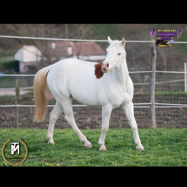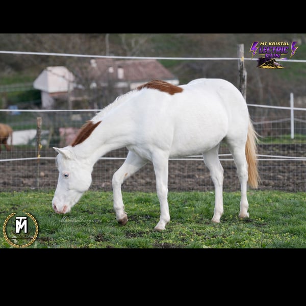 💖MT Kristal Lectric Gun💖 3-jährige APHA-Stute in Sorrell Splash Overo mit zwei blauen Augen 5-Panel-Gen-Tests negativ 🌟-Kimi Black R.W.B x *Spooks Lectric Gun🌟 - KIMI ist eine der ersten im EU getesteten Stuten mit einem Kopie des EDXW2-Gen (a/a, e/e, nd2/nd2, EDXW2/n, LWO/n). Größe: ca. 1,56 m * SPOOKY ist negativ auf LWO (A/A, E/e, nd2/nd2, SW1/n, SW2/n, W20/n). Größe: ca. 1,47 m Kristal besitzt ein gutes Wesen, ist sehr hilfsbereit, neugierig und zuverlässig. Sie kennt das Treppenlaufen, hebt die Hufe, lebt barfuß im Paddock. Mit den richtigen Pflegemaßnahmen hat sie schöne, kräftige Hufe, die möglicherweise keinen Eisenbeschlag benötigen. Sie ist regelmäßig entwurmt und geimpft, der Coggins-Test ist negativ, das Gesundheitsbuch ist in Ordnung, und sie besitzt die APHA-Zertifikate. • Geschätzte Endgröße: 1,45–1,55 m • Videos vorhanden • Besichtigung zum Verkauf möglich • Weltweiter Transport möglich • Budget unter 6.000 € Weitere Infos auf Anfrage. Nur 5-Sterne-Haushalt💖