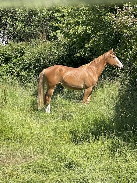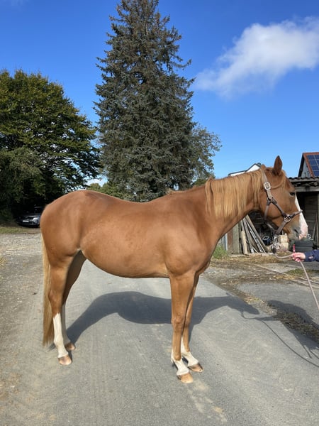 Zum Verkauf steht unsere schöne Paint Horse Stute Rosy, 5 Jahre alt, mit Gunner-Blutlinie. 5 Panel Neg. Sie ist ca. 155cm, und sportlich gebaut. Rosy ist leicht angeritten, zeigt sich sehr brav unter dem Sattel und bringt eine gute Basis für die weitere Ausbildung mit. Sie war bereits im Gelände und verhält sich dort ruhig und gelassen. Im täglichen Umgang ist sie freundlich, unkompliziert und menschenbezogen. Schmied und Verladen sind für sie kein Problem. sie steht im Offenstall mit Weidegang. Sie eignet sich ideal für jemanden, der ein junges Pferd mit guter Abstammung weiter ausbilden möchte. Auf Wunsch inklusive Bob Loomis Sattel und Zubehör. Der Verkauf erfolgt aus gesundheitlichen Gründen als Notverkauf, daher wünschen wir uns für Rosy ein passendes und liebevolles neues Zuhause.
