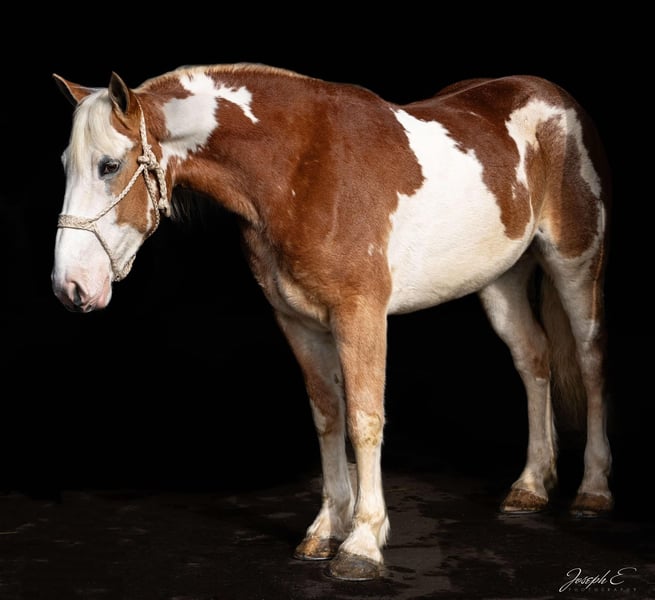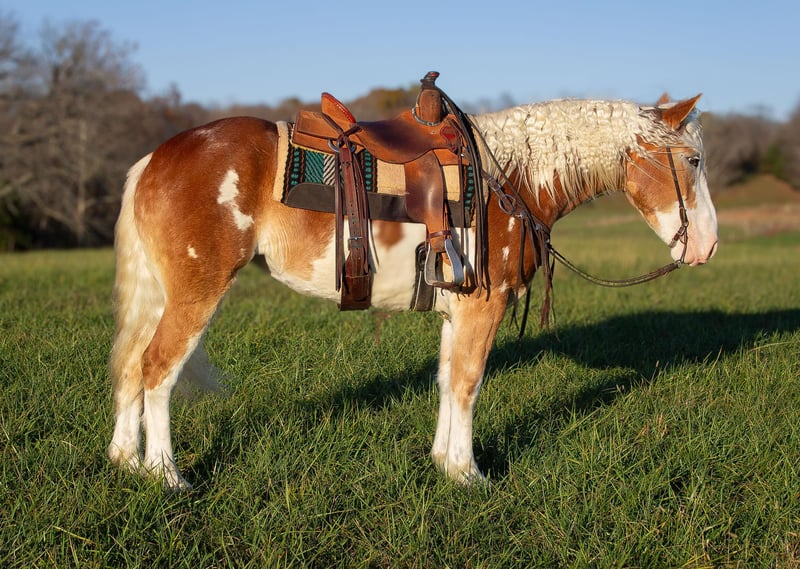ONLINE AUCTION Place your bids at www.PlatinumEquineAuction.com Starting Bid $3500 Auction ends December 22nd, 2024 Need a new saddle? Check out White Rock Saddles on our website or Facebook! Talk about a big boned draft cross that rides and moves like a quarter horse! Daisy Mae is a 2020 draft cross mare standing 16hh. She is an absolute sweetheart and has an in your pocket personality. Daisy doesn’t have a mean bone in her body and truly wants to be your best friend. She stands for mounting, saddling, bathing, grooming, farrier etc. She loads and hauls well. She can be kept out in the field with other horses or in the barn in a box stall. Daisy picks up both her leads with ease and has a true one step short lope. She is soft in the bridle and works well off leg pressure. She has a soft and easy backup and a nice quick stop. She has been extensively trail ridden and crosses water, logs or any thing else in her path. Daisy has also been exposed to the arena obstacles and does them all. We have used her for ranch work also such as checking cows and repairing fences. Daisy can work all day and still keep a good attitude. One of the coolest things about Daisy is that she can also be drove. We have used her in the buggy and carriages. She is not scared of traffic. She was raised by the Amish and has been used in all types of farm machinery. Daisy has great ground manners and is not pushy. She is broke to flags, tarps, whips. Around our place she is always the one that gets picked first to do any job. Daisy is currently being trained to lay down on command and is coming along nicely. Daisy Mae lives in Greensburg Ky. Call Alex Pearl with any questions 270-234-4148. ONLINE AUCTION Place your bids at www.PlatinumEquineAuction.com Starting Bid $3500 Auction ends December 22nd, 2024 Need a new saddle? Check out White Rock Saddles on our website or Facebook!