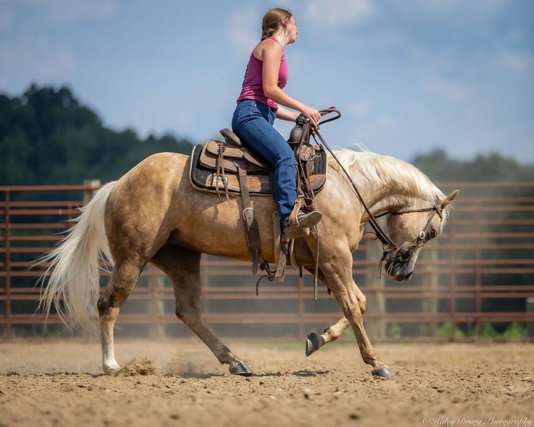 ⚜ The HERITAGE Classic ⚜ Happening now thru MONDAY | AUGUST 11th - Available EXCLUSIVELY on HorseBid's website! For more details and to register visit: www.Horsebid.com CONSIGNOR CONTACT: Jamie Thomason 270-772-1706 LOCATION: Auburn, KY BREED: APHA REGISTERED: Yes REGISTERED NAME: CASHED N DIAMONDS COLOR: Palomino HEIGHT: 14 AGE: 8 GENDER: Mare Introducing CASHED N DIAMONDS, respectfully known as Harley! An 8 yr old, APHA, palomino mare, standing 14 hands. An own daughter of NRHA Million Dollar Sire, BIG CHEX TO CASH with LTE of $220,826 & Offspring Earnings of $1,342,000+. In the arena, out on the trail, heeling steers in the roping pen, or working on the ranch this pretty lady is not only there to get the job done, but to get it done with style! Harley has a beauty that is unmatched, paired with flawless conformation, and the training to be an asset in a variety of disciplines. Harley is soft in the face, travels both directions collected & on the correct lead. Moves laterally off leg pressure, has a smooth stop, and a nice turn around. On the trail, Harley rides alone or in a group, crosses water, downfall, and navigates rough terrain. She is no stranger to a days work. Has been taken out west to brandings, used to move cattle on the farm alongside working stock dogs, open & closes gates. She’s quiet in the roping box, scores well, has quick speed that would easily transition to breakaway or the barrel pattern. Truly a versatile horse! If you're searching for the perfect partner…..whether it's a horse for the arena, a standout in the roping pen, a fun trail companion to explore the great outdoors, or a mare with the pedigree, presence, and conformation ideal for a broodmare—Harley is your girl! With her versatile talent, proven bloodlines, and eye-catching looks, she checks all the boxes for riders and breeders alike. Don't miss the chance to add this exceptional mare to your barn! For any other question or if you would like to meet Harley in person before adding her to your family, feel free to reach out!