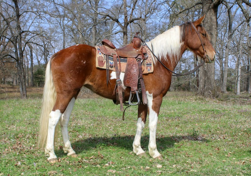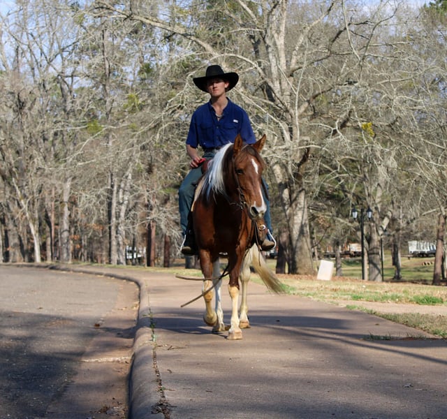 "AVAILABLE ON ONLINE HORSE AUCTION AT www DOT PlatinumEquineAuction DOT com BIDDING OPEN NOW thru SUNDAY | MARCH 8TH! *Final price will be determined on auction site* CONSIGNOR CONTACT INFO: Rileigh Dinges 979-362-0756 LOCATION: Cushing, TX Abby is a 9 year old paint gaited mare, standing 14.3 hands tall and is as flashy as they come! If your looking for a horse that combines beauty, brains, and a gentle temperament? Look no further! This eye-catching mare is gentle, quiet and extremely willing! Abby has been trail rode all over, she goes wherever she is asked, crosses the creeks, logs and bridges great! She has also been around cattle for basic ranch work. she has smooth gates and traveled out great when asked! Abby has been hauled to lots of trail camps, been on overnight camping and does great with anything you throw at her! If you're looking for a trail partner, and a stunning addition to your family, this mare is the one for you! If you would like to schedule a time to come meet and ride Abby, or have any other questions about her feel free to reach out!