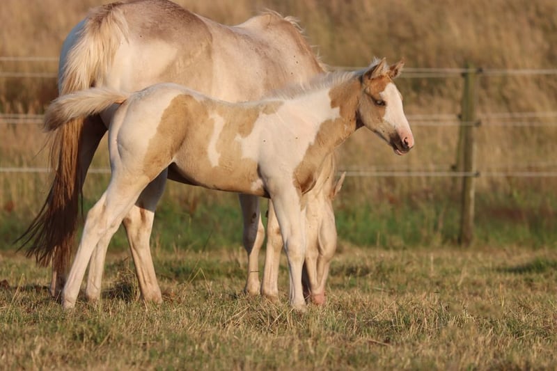 CHEYENNES HARRAHS Palomino Tobiano APHA Mare Born: 20.05.2025 Expected height approx. 155 cm 7 Panel N/N ee aa CRcr Tt