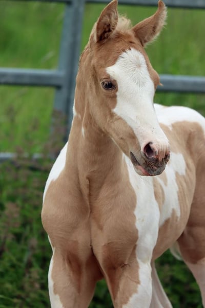 CHEYENNES HARRAHS Palomino Tobiano APHA Stute Geboren: 20.05.2025 Endgrösse ca 155 cm 7 Panel N/N ee aa CRcr Tt