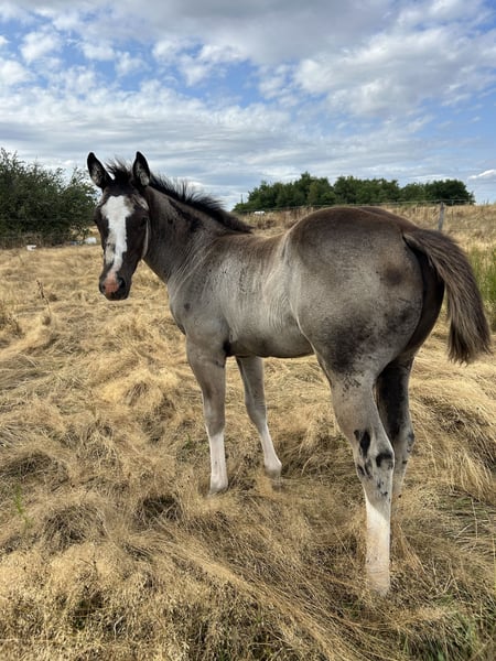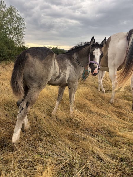 Wspaniała klacz Paint horse urodzona 02/06/2025. Linia Wash po ojcu i Sacred Assets po matce. Klacz bardzo bliska człowiekowi z doskonałymi kończynami.