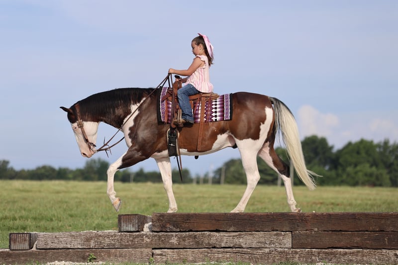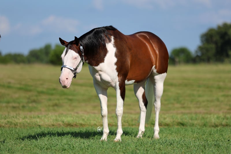 ⚜ The HERITAGE Classic ⚜ Happening now thru MONDAY | AUGUST 11th - Available EXCLUSIVELY on HorseBid's website! For more details and to register visit: www.Horsebid.com CONSIGNOR CONTACT: Premier Horses LLC 417-761-2580 LOCATION: Buffalo, MO BREED: APHA REGISTERED: Yes REGISTERED NAME: TWR Gotta Whiz Kid COLOR: Bay Overo HEIGHT: 15 AGE: 11 GENDER: Gelding Check out the pattern on Patriot, I can guarantee you have not seen one as unique as him! If you are looking to turn heads every where you go, look no further. He has a gorgeous dark bay base with the most piercing blue eyes. Patriot has a pretty long white tail and to switch things up, he has a solid black mare. How much more can you stand out? Oh, that’s right you can boast to your friends he is an own son of the legendary $7 Million Dollar Sire Spooks Gotta Whiz! If you are looking to add a superb gelding to your family that checks all the boxes, stop your search right here! Patriot has been shown and is an NRHA money earner, with his pedigree he has such a cool style all the way around. He is solid in his lead changes, flawless roll backs, and spins good. Would be a solid short stirrup or youth rider wanting to learn the basics and look sharp doing so. He is very patient with kids as young as 6 years old, either on the ground pampering him or riding him. Patriot absolutely melts in the hands of our daughter when she goes to the barn each day to give pets and treats. If you don’t have any interest in showing, that is totally fine because his resume does not stop in the arena. He does require show maintenance. Patriot is well versed on the trails and loves going on all kinds of adventures with his rider. He is a lot of fun to take across the obstacles, check the mailbox, and go over bridges on. Our daughter rides him around bareback most of the time and insists she carries the American Flag on him, he really is the best babysitter! He has impeccable ground manners and is very easy to handle. If you have ever dreamed of owning a son of Spooks Gotta Whiz, that notably stands out from the rest, do not miss out on your chance to add him to your family. Patriot is truly a remarkable gelding that will make anyone fall in love!
