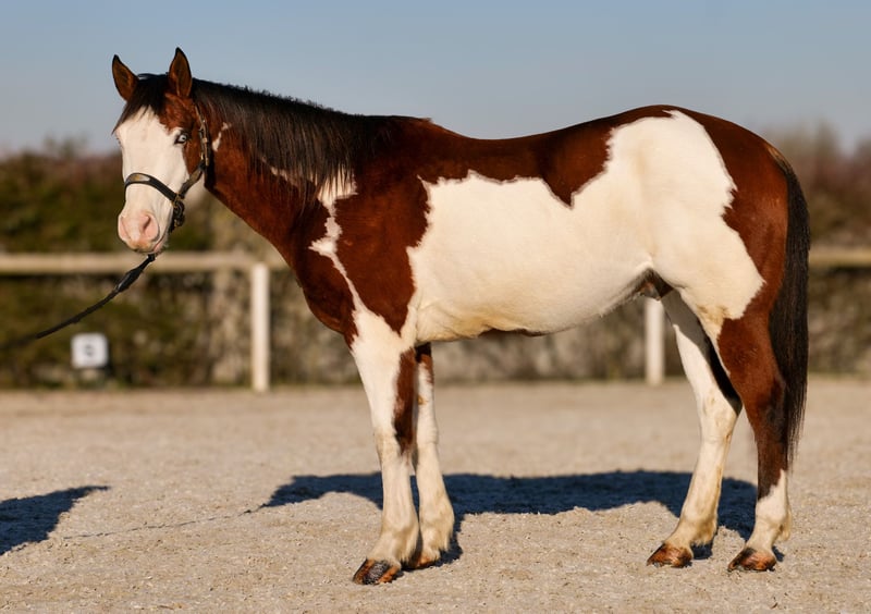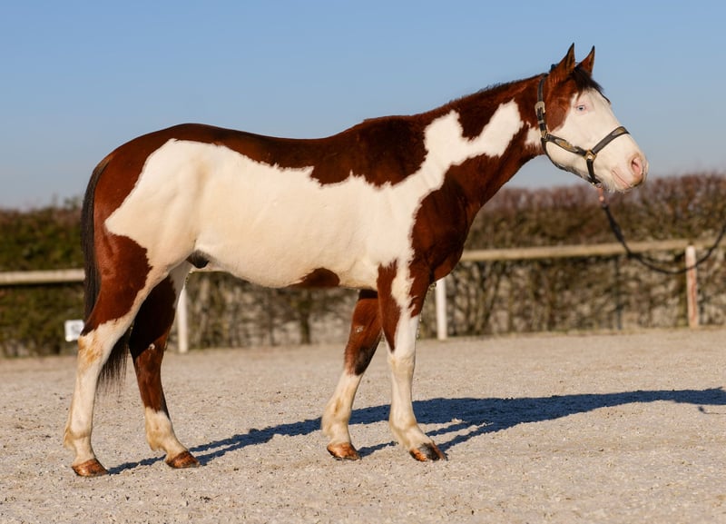Name: Harley Grand King Rasse: American Paint Horse Geschlecht: Wallach Geburtsdatum: 01.05.2015 Alter: 11 Stockmaß: 1.55m Farbe: Schecke Abstammung: mit Abstammungsnachweis Charakter: geduldig, neugierig, intelligent, mutig, gelassen Ausbildung/Eignung: geritten, Western, Freizeit Geländeerfahrung: zuverlässig, unerschrocken, nervenstark, alleine und in der Gruppe Gesundheit: entwurmt, geimpft, Barhufer, ekzemfrei, Zähne kontrolliert Haltung: Box, Offenstall Besonderheiten: gute Grundgangarten, sitzbequem, schmiede und verladefromm, herdenverträglich Die genannten Eigenschaften beruhen auf unserer persönlichen Einschätzung und stellen keine zugesicherten Merkmale dar. Preis: 7500€ (Bruttopreis) Haben wir ihr Interesse geweckt? Um Ihnen einen besseren Eindruck von Harley zu geben, senden wir Ihnen sehr gerne sein Reitvideo zu. Selbstverständlich stehen wir Ihnen für eine ausführliche Beschreibung des Pferdes, persönliche Beratung und zur Beantwortung aller Ihrer Fragen auch telefonisch zur Verfügung. Bitte schreiben Sie uns hierfür jederzeit eine WhatsApp Nachricht, oder rufen unter folgender Telefonnummer an: +49 15119487595 Unsere Telefonzeiten sind täglich von 7:00 - 13:30 sowie ab 20:00Uhr. Wir freuen uns über Ihre Kontaktaufnahme! Eine klinische oder Röntgenologische Ankaufsuntersuchung kann gerne vom Tierarzt Ihrer Wahl durchgeführt werden. Natürlich kann Harley sicher und komfortabel in sein neues Zuhause geliefert werden. Wir kümmern uns um alle notwendigen Vorbereitungen und den Transport, damit Ihr neues Pferd stressfrei, gut betreut, versichert und wohlbehalten im neuen Zuhause ankommt. Zurzeit präsentieren wir eine sorgfältig ausgewählte Vielfalt an Verkaufspferden. Bei uns finden Sie garantiert Ihr Traumpferd. Besuchen Sie uns auch gerne auf unserer Homepage unter: www.marvinsroyalhorses.de. Sehr geehrte Kunden, gerne stellen wir Ihnen unsere Pferde vor und führen, putzen, satteln, longieren, Bodenarbeit sowie Probereiten in der Reithalle, auf dem Platz oder im Gelände ist Ihnen möglich, um Ihr neues Familienmitglied näher kennenzulernen. Dieses kostet für ein Pferd 40€, für jedes weitere 30€ und wird beim Kauf wieder erstattet. Unsere Adresse lautet: Grube Ferdinand 50 53577 Neustadt Wied Google Maps: marvinsroyalhorses