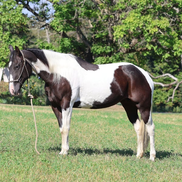 Looking for a wonderful trail partner and an excellent broodmare? Look no further than Ashley, a stunning 12-year-old, 15 hand Pinto Paint mare. Ashley is a joy to ride and excels on the trails, where she is both calm and confident. She's a true trail enthusiast who loves to be out and about. Ashley would make an all-star broodmare and would be a true asset to a program looking for foals with great qualities & striking markings. While Ashley does have some mild shoulder discomfort, it's important to note that this does not prevent her from being a willing and enjoyable trail horse. Her love for being out on the trails is a testament to her spirit and heart. Ashley's personality and love for the trail make her a wonderful companion.