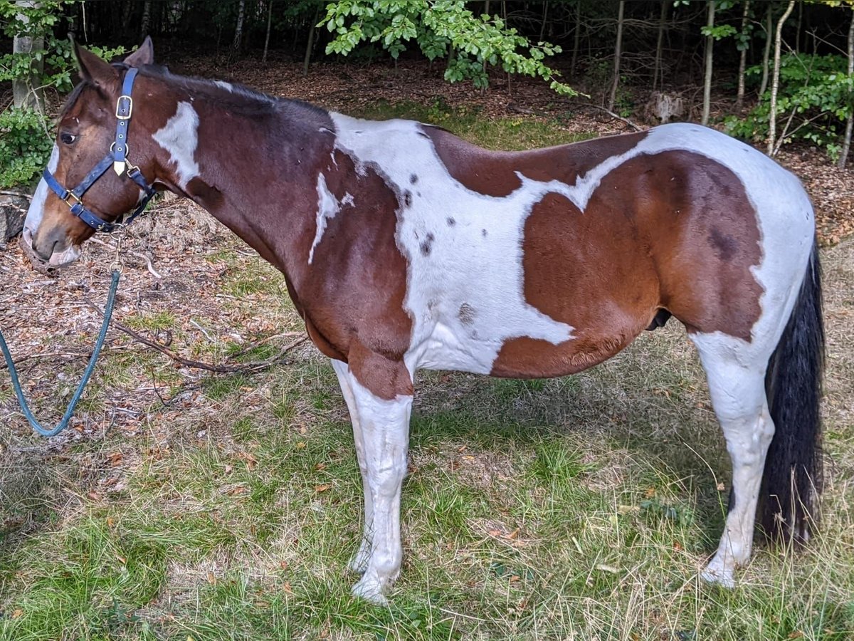 Ik wil na lang nadenken mijn lieve, mensgerichte en knappe 12-jarige Paint Horse hengst S Already Painted Bar in liefdevolle handen geven. Ready heeft een stokmaat van ongeveer 158 cm. Hij heeft een rustig temperament en is bekend met kinderen, honden, verkeer, etc. We zijn samen op vakantie geweest en hebben aan verschillende cursussen deelgenomen, waaronder ook een Cutting-cursus. Hij is barhuf. Zeer braaf bij de dierenarts en de hoefsmid. Hij wordt in een open stal gehouden, maar kent ook een actiefstal. Zijn rangorde ligt in het midden. Ready is recreatief Western gereden. Hij is nooit een wedstrijdpaard geweest. Bij mij heeft hij geen ademhalingsproblemen, koliek of allergieën gehad. Helaas is hij door een voorhoefgewricht artrose slechts nog zeer beperkt berijdbaar. Lichte grondwerkzaamheden en wandelingen zijn mogelijk. Plaats gaat voor prijs.