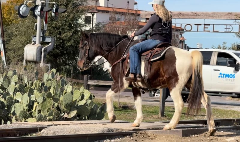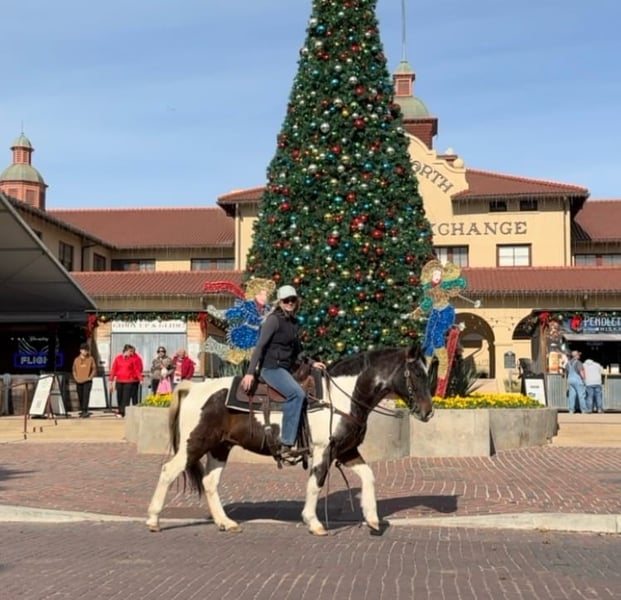ONLINE AUCTION Place your bids at www.PlatinumEquineAuction.com Starting Bid $3500 Auction ends December 22nd, 2024 Need a new saddle? Check out White Rock Saddles on our website or Facebook! Barnaby is a 13 yr old 14.1 hand bay roan and white paint gelding that everyone is sure to fall in love with! If you need one that rides like a COUCH, this guy is for you!! He is absolutely comfortable at all gaits and his lope is like riding a stick of butter! He has spent his days raising up kids that are now ready to move onto the step up performance horses. Barnaby is gentle gentle gentle and if you can hold the reins you can ride him! He’s broke like one should be which will make the beginner kids fall in love with riding! He neck reins with ease and moves off leg great! He has all the buttons, picks up both leads and stops right when you ask him to! He was used for play days, trails, pleasure rides and he has also pushed cows and roped the dummy! Barnaby would be the perfect kids play day horse, lesson horse or trail horse for any novice rider, older rider, or beginner that’s looking for a safe mount! He has absolutely ZERO buck bolt or rear and is easy to get along with in all aspects! He loads, leads, bathes and ties like a saint and he is UTD on teeth, feet and coggins! He has a huge loving personality and is sure to make anyone he meets smile! Barnaby is has a really cool bay roan color and definitely stands out from the rest! He has everything going for him that you could ever need in a beginner / kid safe / trail horse! Don’t miss this COMFY, easing going guy the whole family is sure to love! Watch his FULL video and go to his website page northtexashorsecompany.com/barnaby for more pictures and footage! Please call Blair with North Texas Horse Company for more info at 817-757-3046. We LOVE to talk about him! We are located in Weatherford, TX and can help arrange affordable shipping to anyone!! ONLINE AUCTION Place your bids at www.PlatinumEquineAuction.com Starting Bid $3500 Auction ends December 22nd, 2024 Need a new saddle? Check out White Rock Saddles on our website or Facebook!