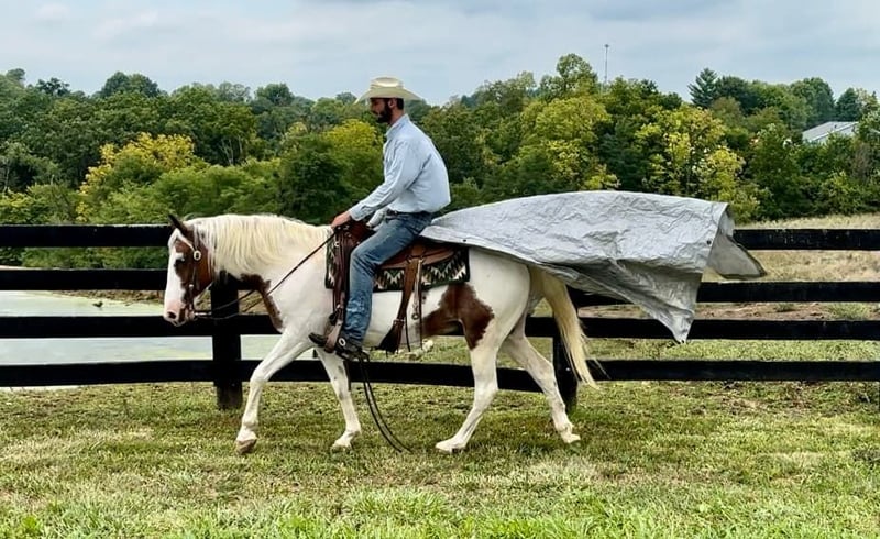 ONLINE AUCTION Place your bids at www.PlatinumEquineAuction.com Starting Bid $3500 Auction ends September 8th, 2024 Need a new saddle? Check out White Rock Saddles on our website or Facebook! Fritz is an eye catching bay roan and white pinto gelding. He is 10 years old and stands 14.3 hands. He is a very stocky and stout made gelding! If you’re looking for a laid back gelding to hit the trails with or to do some light arena work, Fritz is your man! He rides out alone or with a group. He is a very experienced trail riding horse. He will step quietly over logs, he drops down hills easily, and will walk over a ditch like a gentleman. Fritz is not a spooky gelding. He is not frazzled easily, even if younger or less experienced horses get worried over something. He stands nicely when it’s time to take a snack break on the trail. He walks, jogs, and lopes well. Fritz stands grooming, saddling, and mounting. He trailers well and handles new places with grace. Fritz is traffic safe. He is quiet and gentle enough for all levels of riders! If you just want to jump on and have fun bareback with a halter and lead rope, he is comfortable to do that too. In addition to riding, Fritz has been driven to the wagon as a team. He will stand to harness and hook with no issues! His quiet demeanor is hard to find, and that’s what we love the most about him! For more information, please call Sammi Waugh 704-798-5497. Located in Brooksville, KY. ONLINE AUCTION Place your bids at www.PlatinumEquineAuction.com Starting Bid $3500 Auction ends September 8th, 2024 Need a new saddle? Check out White Rock Saddles on our website or Facebook!