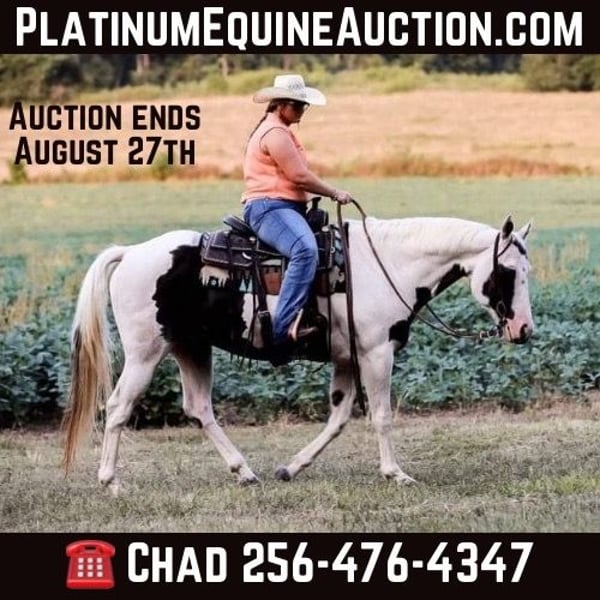 ONLINE AUCTION Place your bids at www.PlatinumEquineAuction.com Starting Bid $3500 Auction ends August 25th, 2024 Need a new saddle? Check out White Rock Saddles on our website or Facebook! Meet Oreo!! He is a 12 year old gelding that is standing 15 hands tall! He has been trail ridden by an older gentleman most of his life he has been all over north Alabama and Tennessee to all the large riding and camp areas! He will handle any obstacle on the trails, logs, ditches, rough terrain, steep slopes, loves water and will swim in the lakes! He has been used in local parades and loves to dress up for costume contest. Don’t miss a trail mount as good as Oreo! For more information contact Chad Little 256-476-4347 Located in Mt. Hope, AL. ONLINE AUCTION Place your bids at www.PlatinumEquineAuction.com Starting Bid $3500 Auction ends August 25th, 2024 Need a new saddle? Check out White Rock Saddles on our website or Facebook!