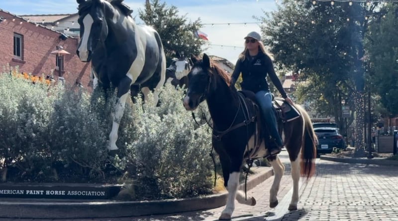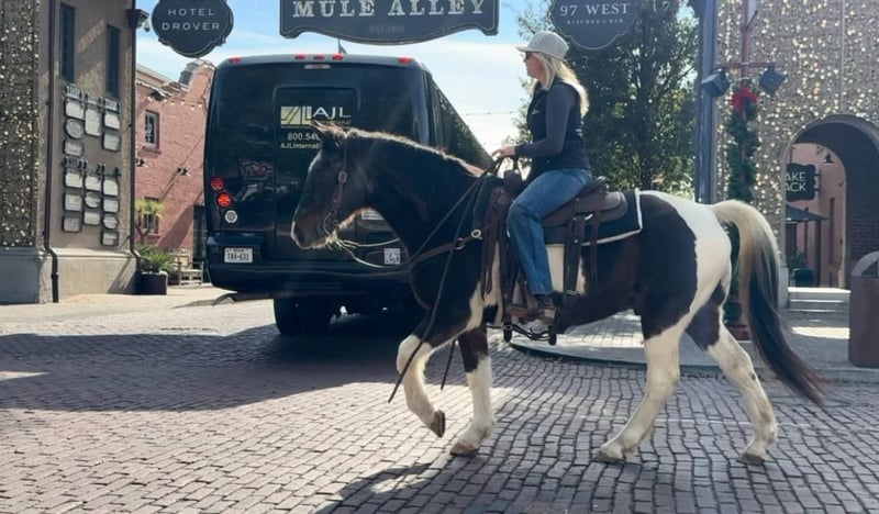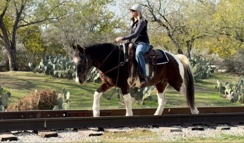 ONLINE AUCTION Place your bids at www.PlatinumEquineAuction.com Starting Bid $3500 Auction ends December 22nd, 2024 Need a new saddle? Check out White Rock Saddles on our website or Facebook! Barnaby is a 13 yr old 14.1 hand bay roan and white paint gelding that everyone is sure to fall in love with! If you need one that rides like a COUCH, this guy is for you!! He is absolutely comfortable at all gaits and his lope is like riding a stick of butter! He has spent his days raising up kids that are now ready to move onto the step up performance horses. Barnaby is gentle gentle gentle and if you can hold the reins you can ride him! He’s broke like one should be which will make the beginner kids fall in love with riding! He neck reins with ease and moves off leg great! He has all the buttons, picks up both leads and stops right when you ask him to! He was used for play days, trails, pleasure rides and he has also pushed cows and roped the dummy! Barnaby would be the perfect kids play day horse, lesson horse or trail horse for any novice rider, older rider, or beginner that’s looking for a safe mount! He has absolutely ZERO buck bolt or rear and is easy to get along with in all aspects! He loads, leads, bathes and ties like a saint and he is UTD on teeth, feet and coggins! He has a huge loving personality and is sure to make anyone he meets smile! Barnaby is has a really cool bay roan color and definitely stands out from the rest! He has everything going for him that you could ever need in a beginner / kid safe / trail horse! Don’t miss this COMFY, easing going guy the whole family is sure to love! Watch his FULL video and go to his website page northtexashorsecompany.com/barnaby for more pictures and footage! Please call Blair with North Texas Horse Company for more info at 817-757-3046. We LOVE to talk about him! We are located in Weatherford, TX and can help arrange affordable shipping to anyone!! ONLINE AUCTION Place your bids at www.PlatinumEquineAuction.com Starting Bid $3500 Auction ends December 22nd, 2024 Need a new saddle? Check out White Rock Saddles on our website or Facebook!