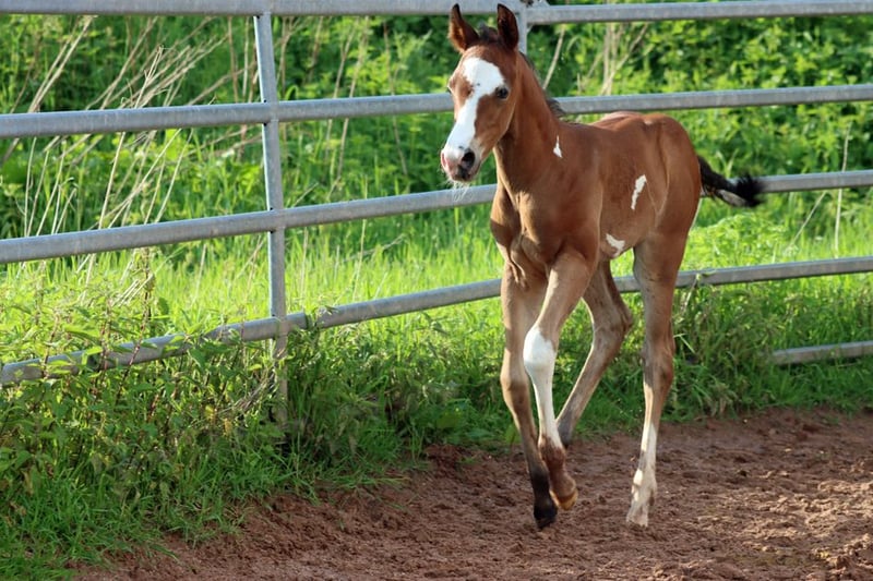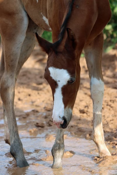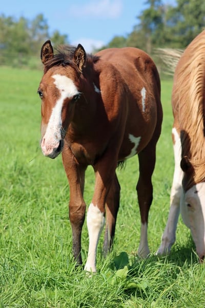 CHEYENNES JUJU PISTOL Bay frame overo Étalon APHA Né le 12.05.2024 Taille finale environ 150 cm 5 Panneau et IMM N/N Ee Aa LWO/N