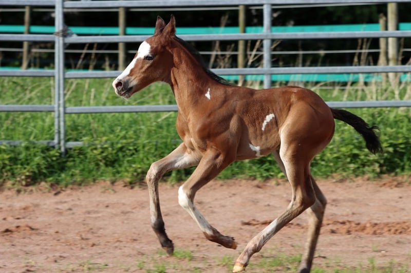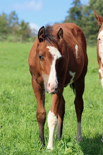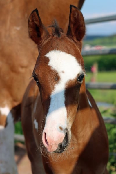 CHEYENNES JUJU PISTOL Bay frame overo APHA Wallach Geboren: 12.05.2024 Endgrösse ca 150 cm 5 Panel und IMM N/N Ee Aa LWO/N