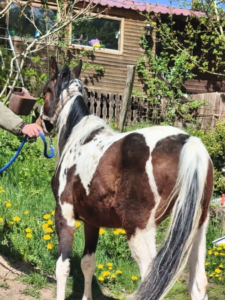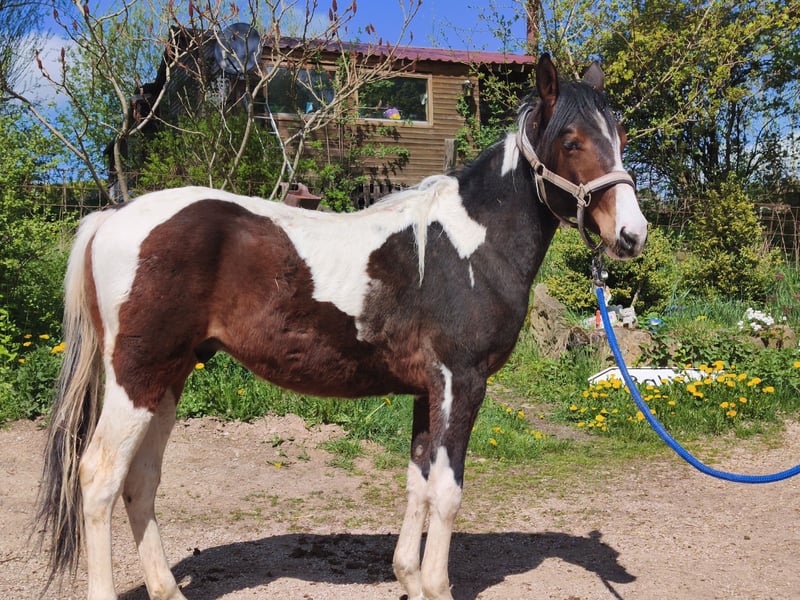 Hola, soy Spirit. La nueva manada no me acepta y me están molestando, mordiendo, persiguiendo, etc. Por eso, busco un nuevo hogar a través de este anuncio. Fui castrado en febrero. Tengo 2 años y mido aproximadamente 133 cm. Soy un potro de raza Paint Horse, sin papeles, y ahora se me vende rápidamente y a un precio reducido, ya que de lo contrario tendría que estar solo, lo cual no queremos. Las fotos son actuales y tomadas hoy. También tenemos otro potro de 1 año que tampoco puede integrarse en la manada. Para más preguntas, no dudes en llamar, ya que rara vez y con poca frecuencia estoy frente a la computadora. Teléfono: 0160 8038660