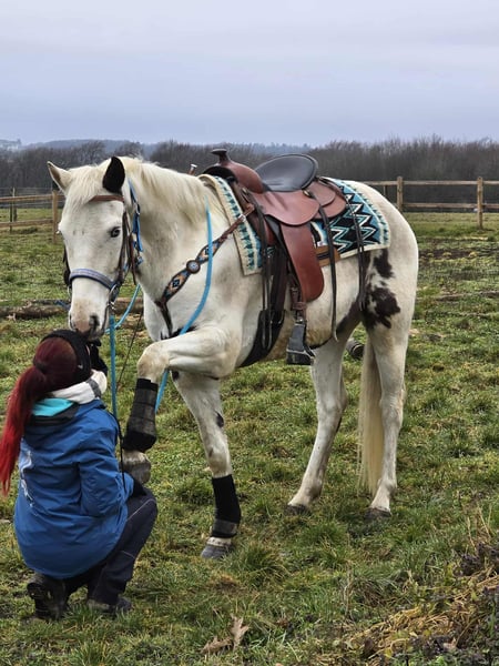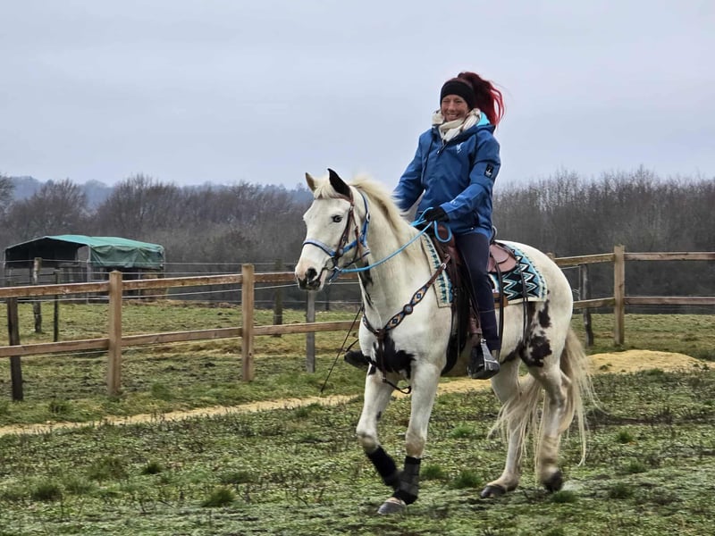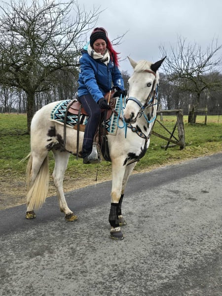 Zuverlässiger Freizeit-Wallach – brav & ideal fürs Gelände Alter: 5 Jahre Stockmaß: ca.1,56 Preis: Zuverlässiger Freizeit-Wallach – brav & ideal fürs Gelände Alter: Jahre Stockmaß: ca. m Preis: 6600,- AKU: vorhanden ✨ Beschreibung: Dieser Wallach überzeugt mit seinem ruhigen, ausgeglichenen Charakter und seiner angenehmen Art im täglichen Umgang. Er ist freundlich, aufmerksam und zeigt sich im Stall sowie beim Putzen und Führen absolut unkompliziert. Unter dem Sattel präsentiert er sich zuverlässig und angenehm zu reiten. Besonders im Gelände ist er ein toller Partner – er geht entspannt vorwärts, und genießt ausgedehnte Ausritte. Auch auf dem Platz arbeitet er motiviert und kooperativ mit. Ein ehrlicher Freizeitbegleiter, der seinem Reiter ein gutes Gefühl gibt und vielseitig einsetzbar ist. 🐎 Geeignet für: Freizeitreiterinnen und Freizeitreiter, die einen ausgeglichenen, geländesicheren Wallach suchen. Ideal für entspannte Ausritte und Platzarbeit. 🩺 Unsere Pferde werden regelmäßig: – entwurmt – vom Schmied betreut – osteopathisch kontrolliert 🛍 Hofladen: Westernsättel, Trensen & Zubehör 🚛 Transport sowie passendes Equipment auf Wunsch günstig organisierbar Unser Service: ✅ 3 Monate Umtauschrecht ✅ Proberitt: 35 €, jedes weitere Pferd 25 € (beim Kauf am selben Tag angerechnet) ✅ 100 € Sofort-Rabatt bei Abholung oder Transport am gleichen Tag ✅ Persönliche & ehrliche Beratung 📞 Anfragen bitte ausschließlich telefonisch: 0171 – 4001968 🕗 Erreichbar täglich von 8–20 Uhr ⚠️ Keine E-Mail oder WhatsApp ⚠️ Alle Angaben ohne Gewähr AKU: vorhanden ✨ Beschreibung: Dieser Wallach überzeugt mit seinem ruhigen, ausgeglichenen Charakter und seiner angenehmen Art im täglichen Umgang. Er ist freundlich, aufmerksam und zeigt sich im Stall sowie beim Putzen und Führen absolut unkompliziert. Unter dem Sattel präsentiert er sich zuverlässig und angenehm zu reiten. Besonders im Gelände ist er ein toller Partner – er geht entspannt vorwärts, und genießt ausgedehnte Ausritte. Auch auf dem Platz arbeitet er motiviert und kooperativ mit. Ein ehrlicher Freizeitbegleiter, der seinem Reiter ein gutes Gefühl gibt und vielseitig einsetzbar ist. 🐎 Geeignet für: Freizeitreiterinnen und Freizeitreiter, 🩺 Unsere Pferde werden regelmäßig: – entwurmt – vom Schmied betreut – osteopathisch kontrolliert 🛍 Hofladen: Westernsättel, Trensen & Zubehör 🚛 Transport sowie passendes Equipment auf Wunsch günstig organisierbar . Unser Service: ✅ 3 Monate Umtauschrecht ✅ Proberitt: 35 €, jedes weitere Pferd 25 € (beim Kauf am selben Tag angerechnet) ✅ 100 € Sofort-Rabatt bei Abholung oder Transport am gleichen Tag ✅ Persönliche & ehrliche Beratung 📞 Anfragen bitte ausschließlich telefonisch: 0171 – 4001968 🕗 Erreichbar täglich von 8–20 Uhr ⚠️ Keine E-Mail oder WhatsApp ⚠️ Alle Angaben ohne Gewähr